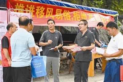 近日,廣西壯族自治區(qū)上林縣人民法院開(kāi)展“推進(jìn)移風(fēng)易俗,拒絕高額彩禮”法治宣傳進(jìn)鄉(xiāng)村活動(dòng)。法院干警通過(guò)以案釋法和分發(fā)文明婚俗倡議書(shū)等方式,為村民解讀了涉彩禮糾紛法律規(guī)定,并就村民關(guān)注的彩禮認(rèn)定范圍、返還規(guī)則以及男女雙方共同生活認(rèn)定規(guī)則等熱點(diǎn)問(wèn)題進(jìn)行了釋法答疑。圖為法院干警在和村民交流。本報(bào)記者 吳 琪 本報(bào)通訊員 韋姍婷 周 群 攝