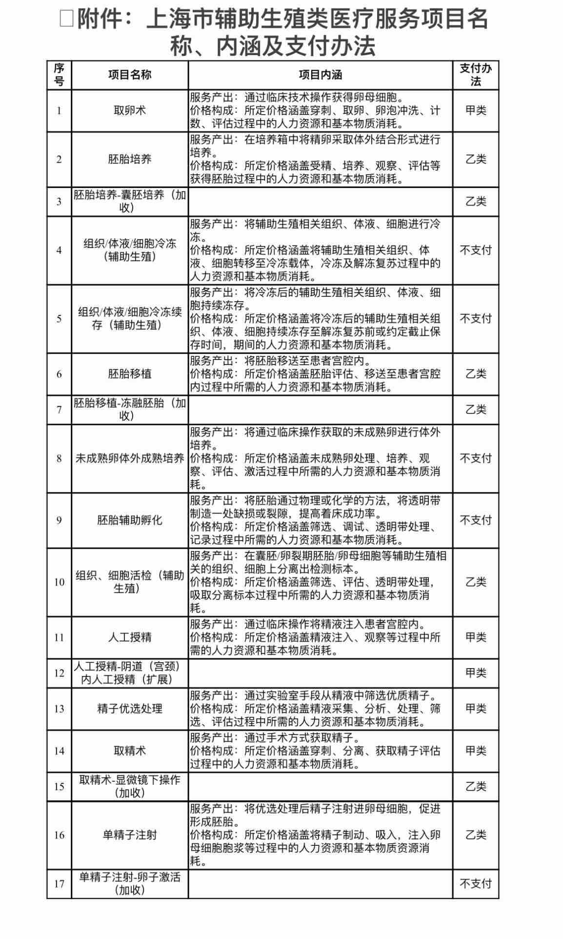 前期,根據(jù)國(guó)家醫(yī)保局有關(guān)立項(xiàng)指南要求,綜合考慮醫(yī)院發(fā)展和患者負(fù)擔(dān),上海市醫(yī)保局對(duì)我市現(xiàn)行輔助生殖類醫(yī)療服務(wù)項(xiàng)目進(jìn)行規(guī)范,優(yōu)化整合為“取卵術(shù)”等17個(gè)輔助生殖類醫(yī)療服務(wù)項(xiàng)目。其中,12個(gè)項(xiàng)目納入上海醫(yī)保支付范圍,涵蓋取卵術(shù)、取精術(shù)、人工授精、胚胎培養(yǎng)、胚胎移植等必要醫(yī)療性輔助生殖技術(shù)。