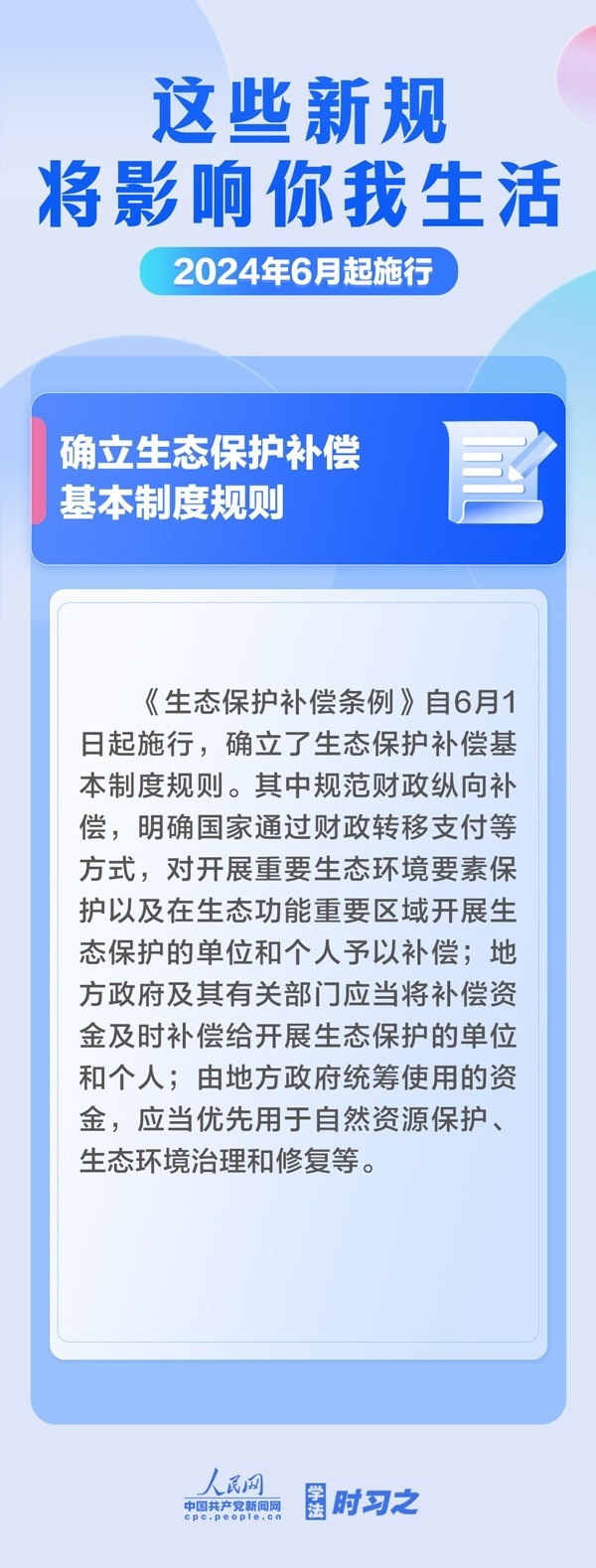 保障糧食有效供給;確立生態(tài)保護(hù)補(bǔ)償基本制度規(guī)則;規(guī)范保障海警機(jī)構(gòu)依法履職……6月起,這些新規(guī)施行,將影響你我生活。