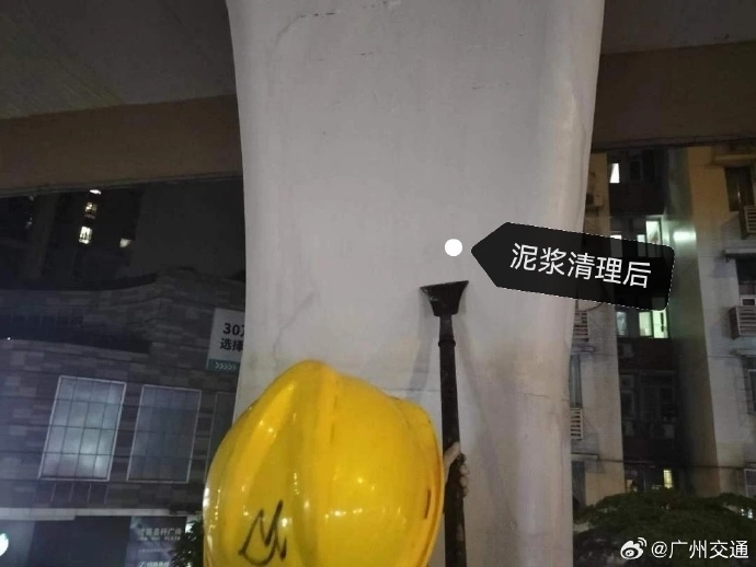 廣州市道路事務(wù)中心現(xiàn)場(chǎng)核實(shí),照片中的“裂縫”為泥漿污漬,現(xiàn)已完成污漬鏟除和涂裝翻新。