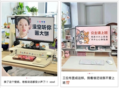 “按個人喜好裝修的工位可以讓年輕人在這一方小天地里可以獲得短暫的歸屬感與安全感,將目之所及之處都變成自己想要的樣子,令他們在客觀條件有限的情況下盡可能讓自己感到舒適,也更容易從工作中感到幸福?!庇诠馊鸱治稣f。