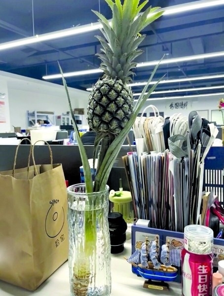 00后楊三日從事新媒體運營工作,她在工位上養(yǎng)了一個菠蘿,“養(yǎng)菠蘿是一件很酷的事情,不僅能觀賞,還能吃,很配我特立獨行的氣質(zhì)?!彼f自從養(yǎng)了菠蘿之后,每天上班時心情就變得非常好。“我的工位就像熱帶雨林一樣,提前進入了春天?!?/p>