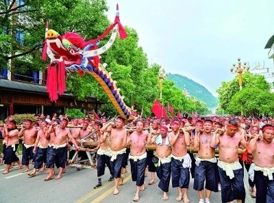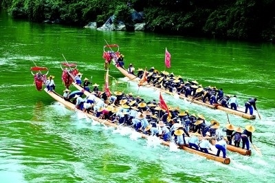 每年農歷五月,在貴州省黔東南苗族侗族自治州的清水江流域,當?shù)氐拿缱迦罕姸紩e辦苗族獨木龍舟節(jié)。龍舟節(jié)以水上龍舟競渡為載體,融合了苗族服飾文化、歌舞文化、飲食文化等,數(shù)百年經久不衰,沿襲至今。2008年,苗族獨木龍舟節(jié)便被列入第二批國家級非物質文化遺產代表性項目名錄。