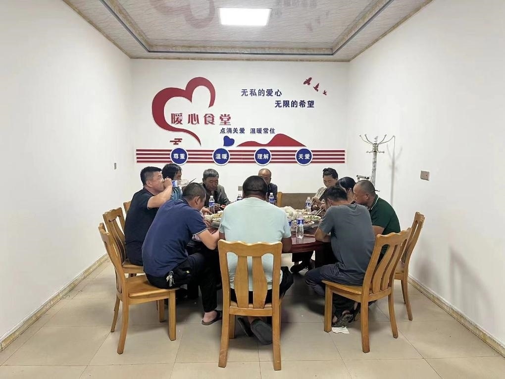 在山東德州陵城區(qū)一家村級“幸福院”,工作了一天的農(nóng)機(jī)手們正在吃晚飯。(受訪者供圖)