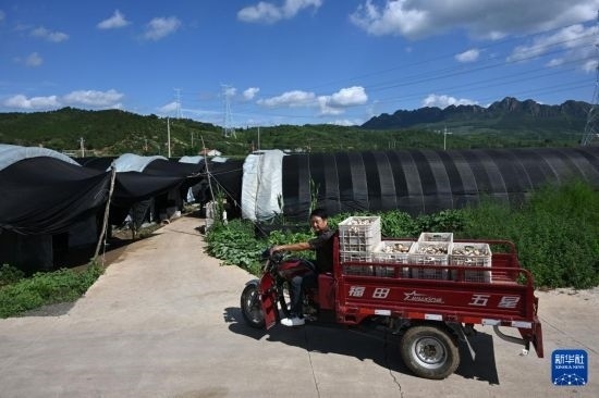 7月26日,當(dāng)?shù)剞r(nóng)民在隆化縣章吉營鎮(zhèn)搬運香菇。