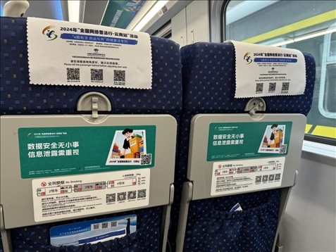 據(jù)介紹,專(zhuān)列的8個(gè)主題車(chē)廂分別以“中國(guó)網(wǎng)絡(luò)法治三十年”“網(wǎng)絡(luò)安全”“數(shù)據(jù)安全”“未成年人網(wǎng)絡(luò)保護(hù)”“數(shù)據(jù)出境之旅”“反網(wǎng)暴凈網(wǎng)行動(dòng)”“個(gè)人信息守護(hù)”以及“網(wǎng)絡(luò)空間命運(yùn)共同體”命名,通過(guò)鏡框海報(bào)、玻璃貼、小桌板貼、行李架彩貼、頭枕片、車(chē)內(nèi)LED信息屏等形式多樣的載體,全面展示網(wǎng)絡(luò)法治30年成就、網(wǎng)絡(luò)空間命運(yùn)共同體主張。讓乘客們?cè)谙硎苁孢m旅途的同時(shí),也能輕松學(xué)習(xí)到實(shí)用的法律信息。
