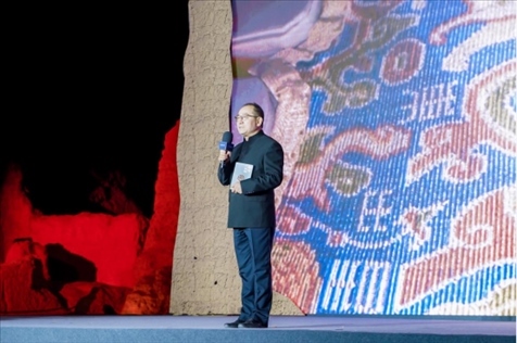于志勇在“何以中國·五星出東方”網(wǎng)絡(luò)主題宣傳活動現(xiàn)場演講。人民視頻供圖