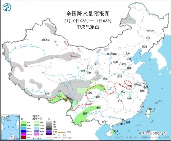 全國降水量預(yù)報圖(2月10日08時-11日08時) 圖片來源:中央氣象臺網(wǎng)站
