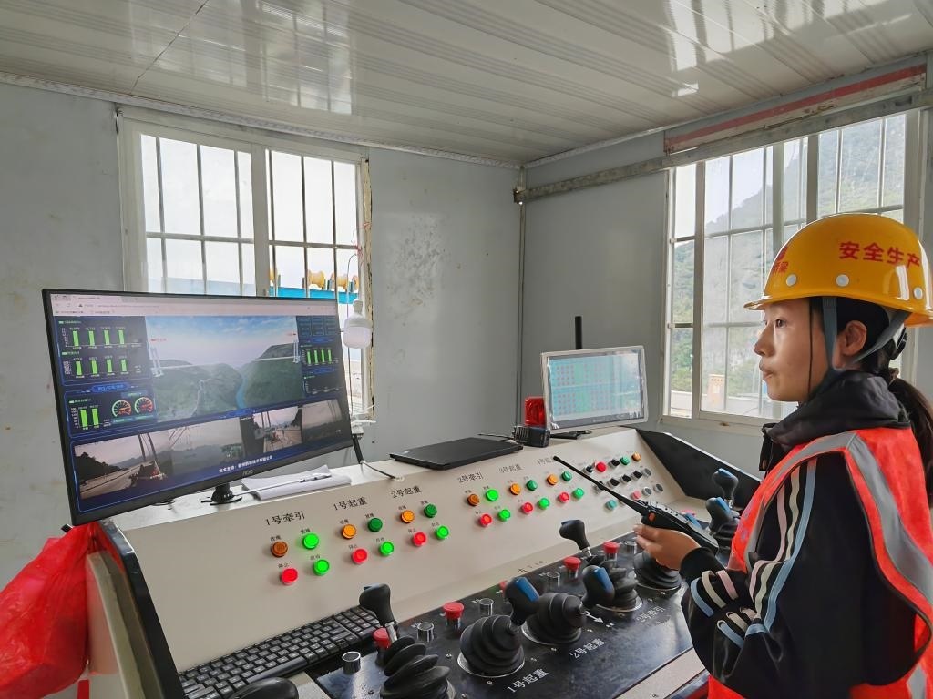 年輕的技術員操控大橋吊裝。新華社記者向定杰 攝