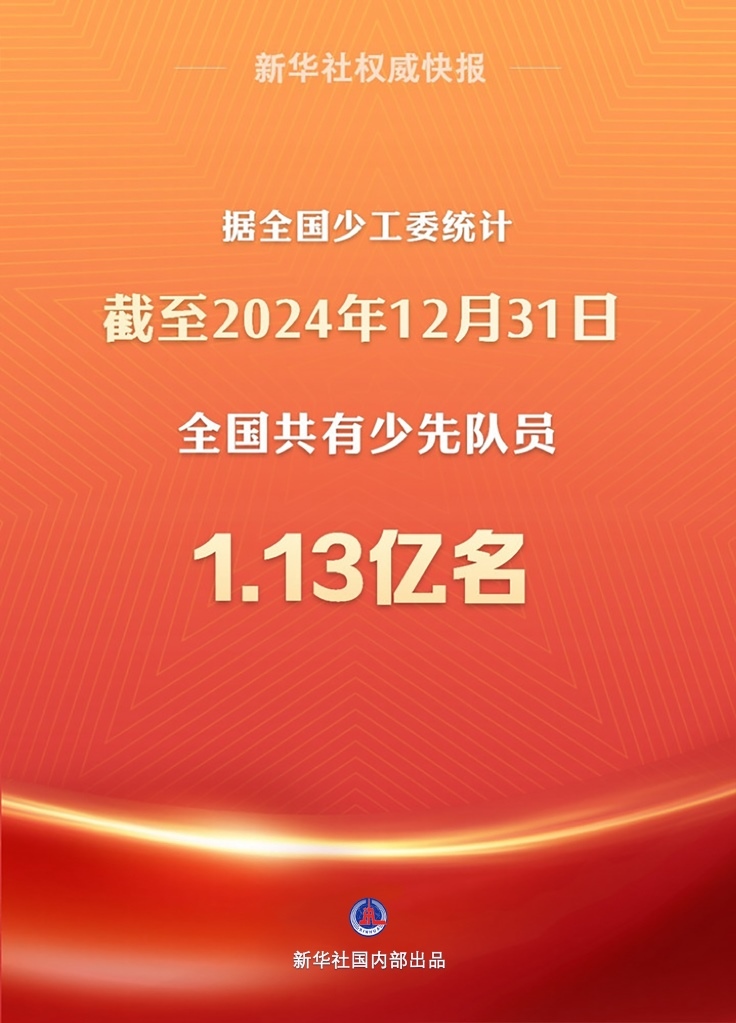 新華社北京5月31日電 記者31日從共青團(tuán)中央獲悉,據(jù)全國少工委統(tǒng)計,截至2024年12月31日,全國共有少先隊(duì)員1.13億名,中小學(xué)校少先隊(duì)大、中隊(duì)輔導(dǎo)員305.4萬名。中小學(xué)校少工委17.6萬個、少先隊(duì)大隊(duì)17.9萬個、中隊(duì)287.4萬個。
