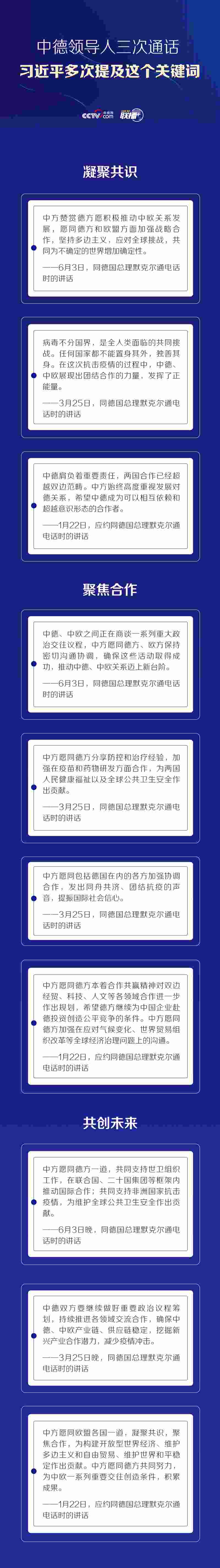 聯(lián)播+6月3日晚,習(xí)近平主席同德國總理默克爾通電話。這是自新冠肺炎疫情暴發(fā)以來,雙方第三次通話。習(xí)近平強(qiáng)調(diào),近日中德“快捷通道”正式啟動,這有利于幫助兩國有需求的企業(yè)加快復(fù)工復(fù)產(chǎn),維護(hù)國際產(chǎn)業(yè)鏈、供應(yīng)鏈穩(wěn)定。