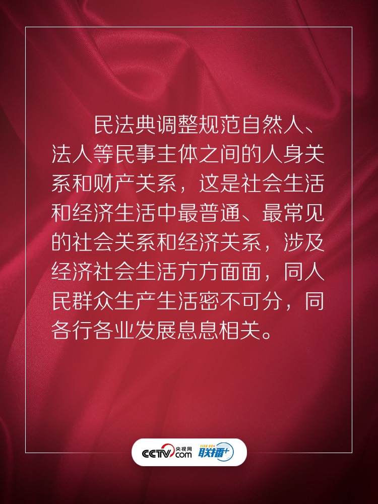 民法典回應(yīng)了人民的期待,充滿了以人民為中心的底色。央視網(wǎng)《聯(lián)播+》特梳理習(xí)近平總書記相關(guān)話語,與您一起學(xué)習(xí)感悟。