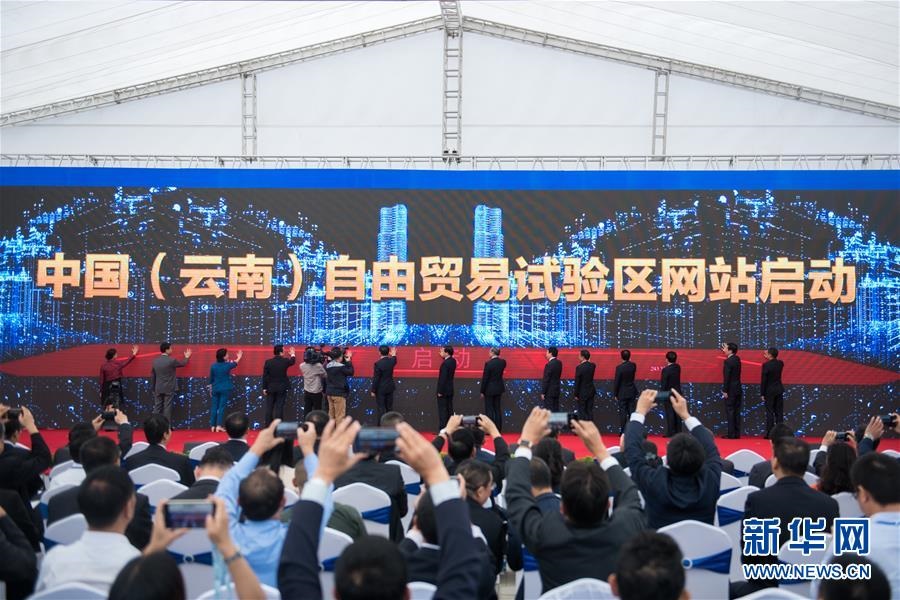 2019年8月30日,在中國(云南)自由貿易試驗區(qū)掛牌儀式上,云南自貿區(qū)網站啟動。新華社記者胡超攝