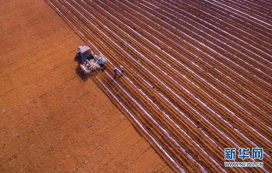 湛江市,甘蔗地里處處閃現(xiàn)著忙碌的身影,耕地、播種、施肥、覆膜、管護(hù);