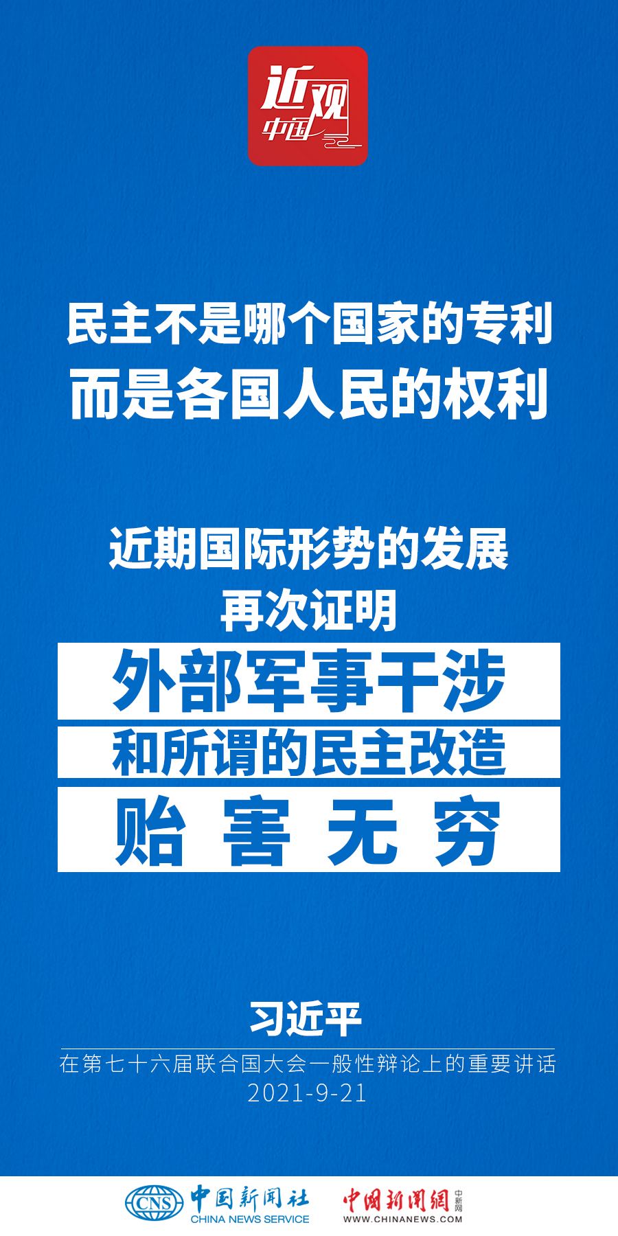中國國家主席習(xí)近平21日在北京以視頻方式出席第七十六屆聯(lián)合國大會(huì)一般性辯論并發(fā)表題為《堅(jiān)定信心 共克時(shí)艱 共建更加美好的世界》的重要講話。習(xí)近平指出——