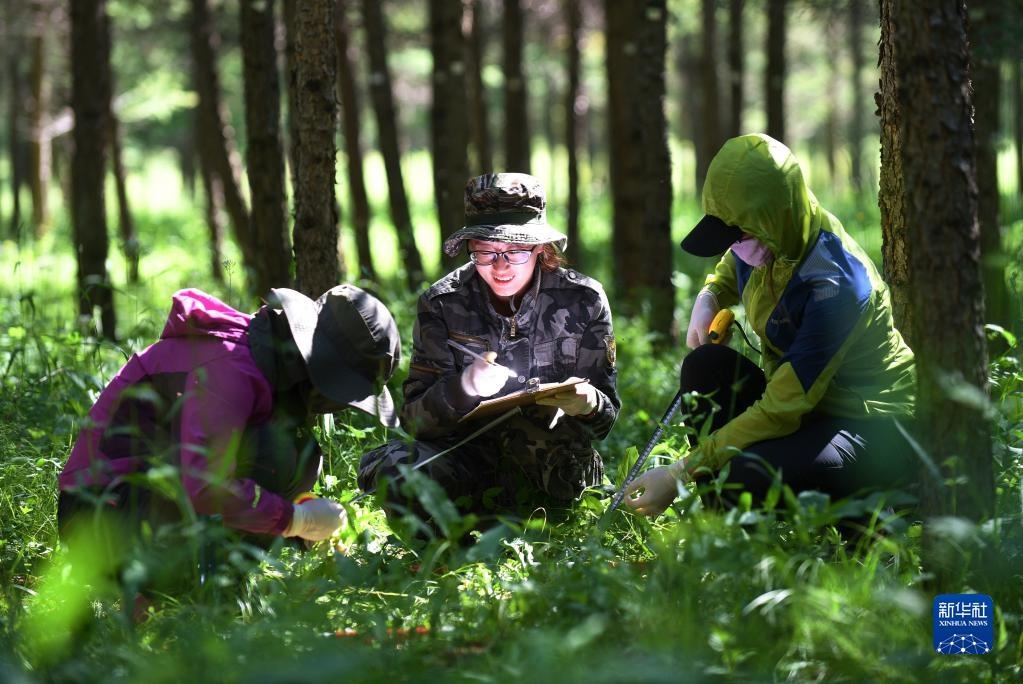 工作人員在河北塞罕壩機(jī)械林場采集數(shù)據(jù)(2017年7月12日攝)。新華社記者王曉攝