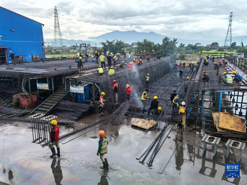 工人在印度尼西亞雅萬高鐵4號(hào)梁場(chǎng)作業(yè)(2022年5月1日攝)。新華社發(fā)(王增堃攝)