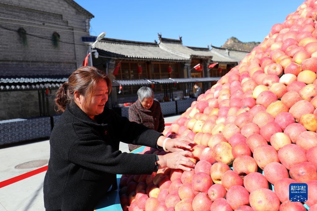 10月17日,河北阜平縣駱駝灣村村民在整理蘋果。新華社記者 駱學峰 攝
