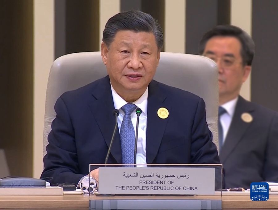 習(xí)近平在會上發(fā)表題為《弘揚中阿友好精神 攜手構(gòu)建面向新時代的中阿命運共同體》的主旨講話。