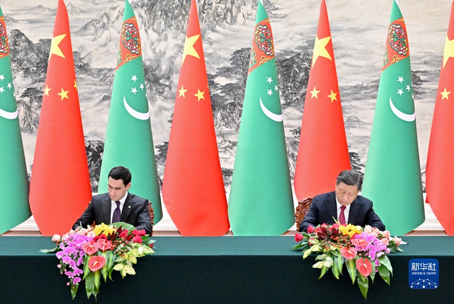 會談后,兩國元首簽署并發(fā)表《中華人民共和國和土庫曼斯坦聯合聲明》,共同見證簽署“一帶一路”、綠色發(fā)展、數字經濟、衛(wèi)生、文化、體育、新聞媒體、天然氣等領域合作文件。