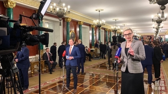 △習(xí)主席和普京總統(tǒng)舉行大范圍會(huì)談的會(huì)場(chǎng)。(總臺(tái)央廣記者潘毅拍攝)