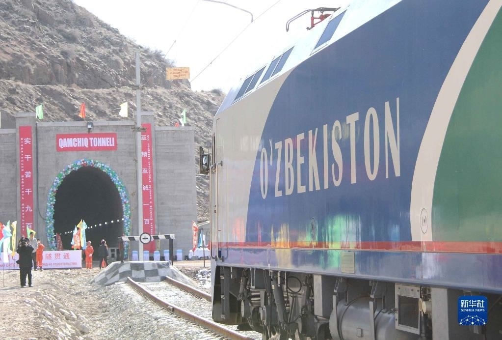 2016年2月27日,一列專列停在烏茲別克斯坦安格連-帕普鐵路卡姆奇克隧道進(jìn)口。中國政府優(yōu)買項(xiàng)目、中鐵隧道集團(tuán)承擔(dān)的中亞最長隧道——烏茲別克斯坦安格連-帕普鐵路卡姆奇克隧道2月27日全隧貫通。新華社記者 沙達(dá)提 攝