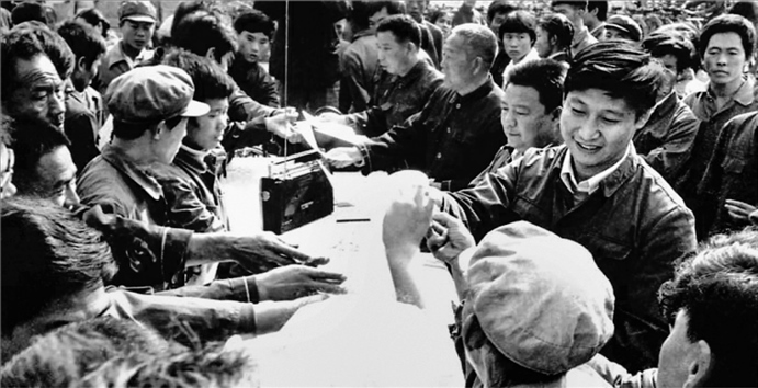 △1983年,時任河北正定縣委書記的習近平,臨時在大街上擺桌子聽取老百姓意見。