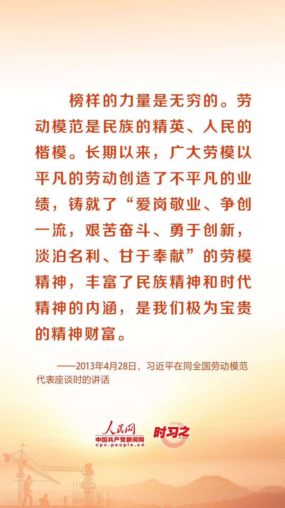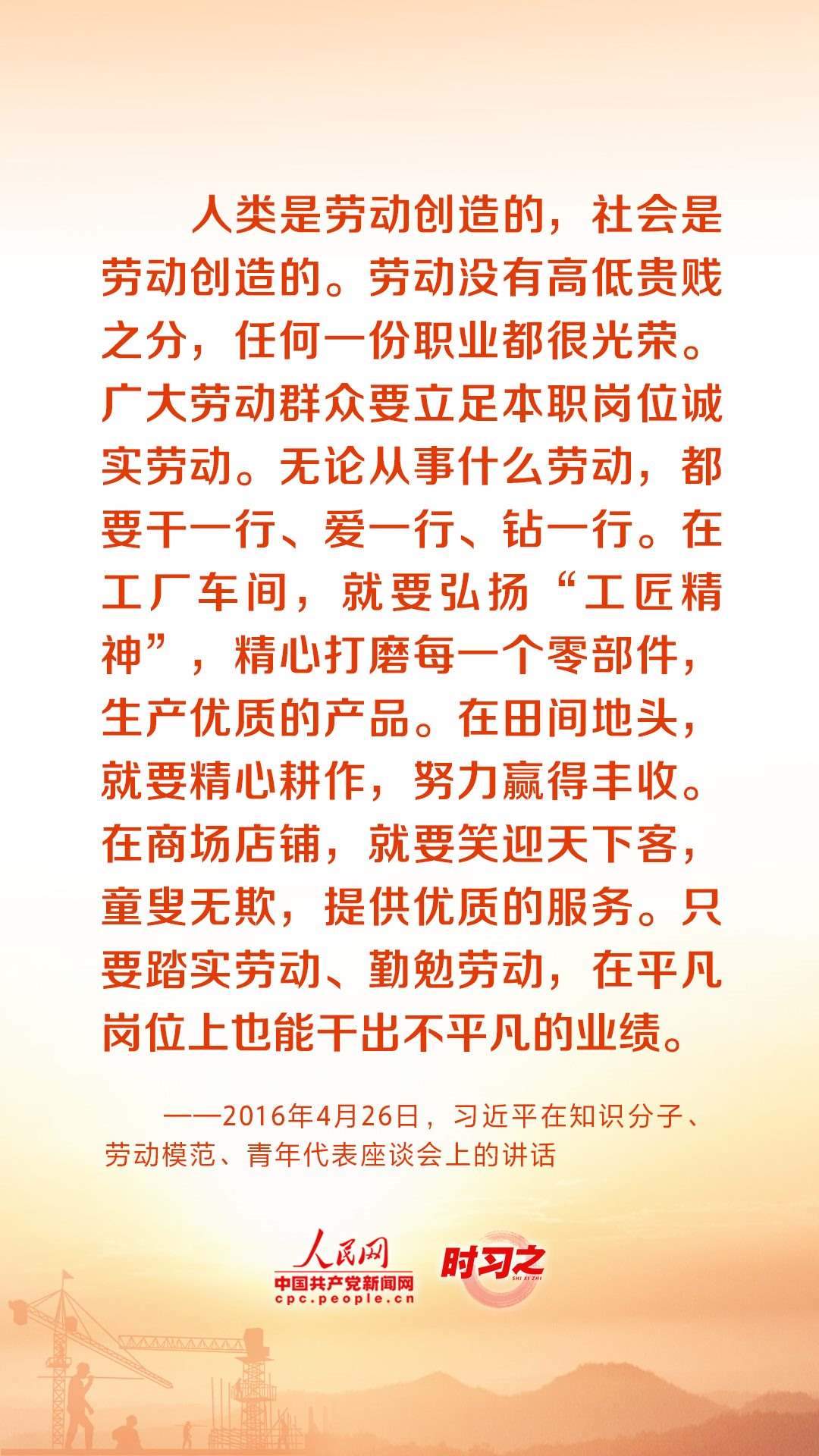 人民創(chuàng)造歷史,勞動(dòng)開(kāi)創(chuàng)未來(lái)。黨的十八大以來(lái),習(xí)近平總書(shū)記始終心系全國(guó)廣大勞動(dòng)者,激勵(lì)廣大勞動(dòng)者在平凡崗位上續(xù)寫(xiě)不平凡的故事。在“五一”國(guó)際勞動(dòng)節(jié)到來(lái)之際,讓我們重溫總書(shū)記的諄諄話語(yǔ),用辛勤勞動(dòng)為經(jīng)濟(jì)社會(huì)發(fā)展貢獻(xiàn)力量。