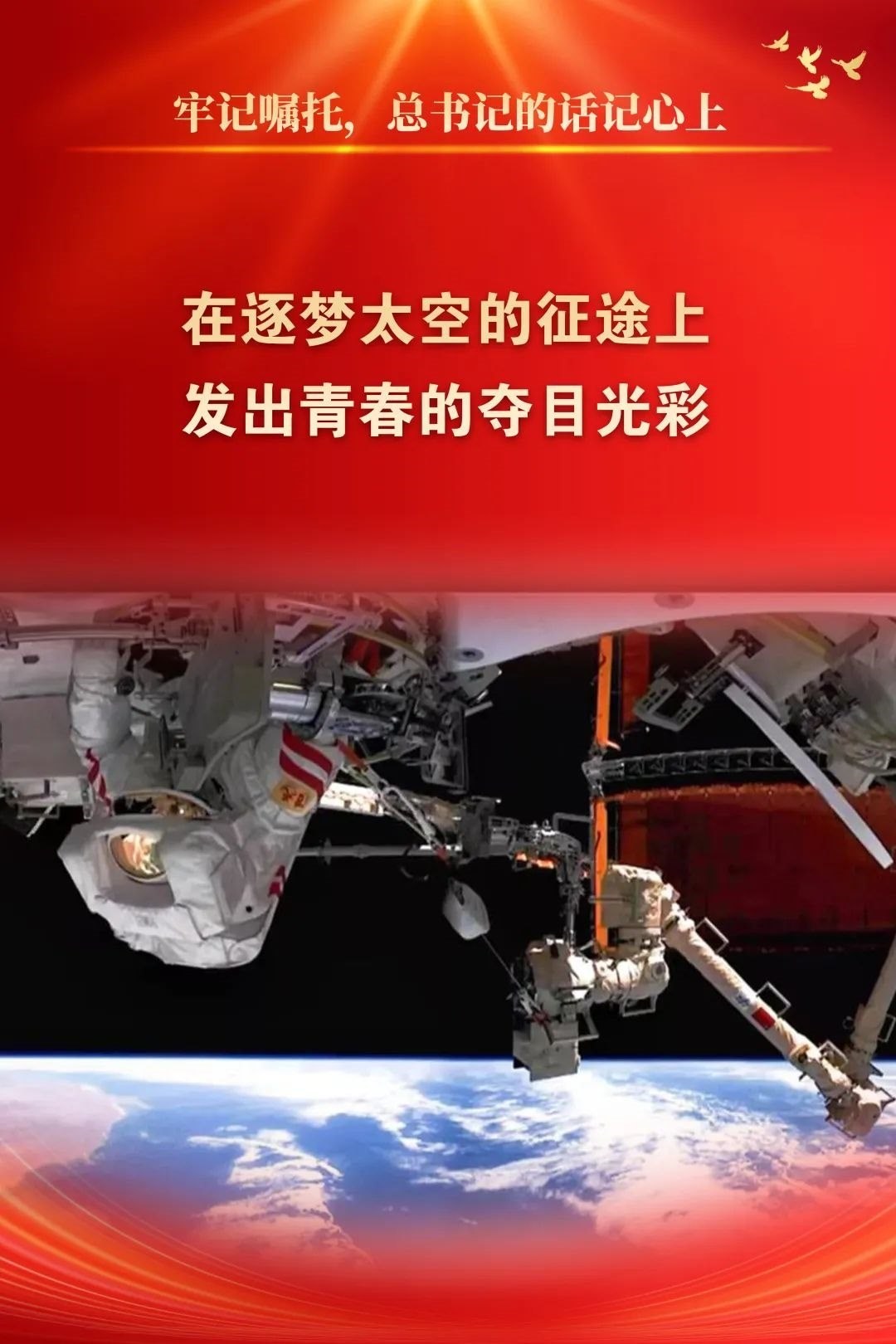 在空間站建造團(tuán)隊(duì)青年的努力下,自2021年4月底天和核心艙發(fā)射以來(lái),僅用19個(gè)月,空間站在軌組裝建造一氣呵成,中國(guó)“天宮”矗立云端。中國(guó)載人航天工程“三十而立”,我們用全勝的優(yōu)異戰(zhàn)績(jī),在探索宇宙的新征程上跑出了中國(guó)航天“加速度”,讓遙不可及的夢(mèng)想變成天地之間的現(xiàn)實(shí)。