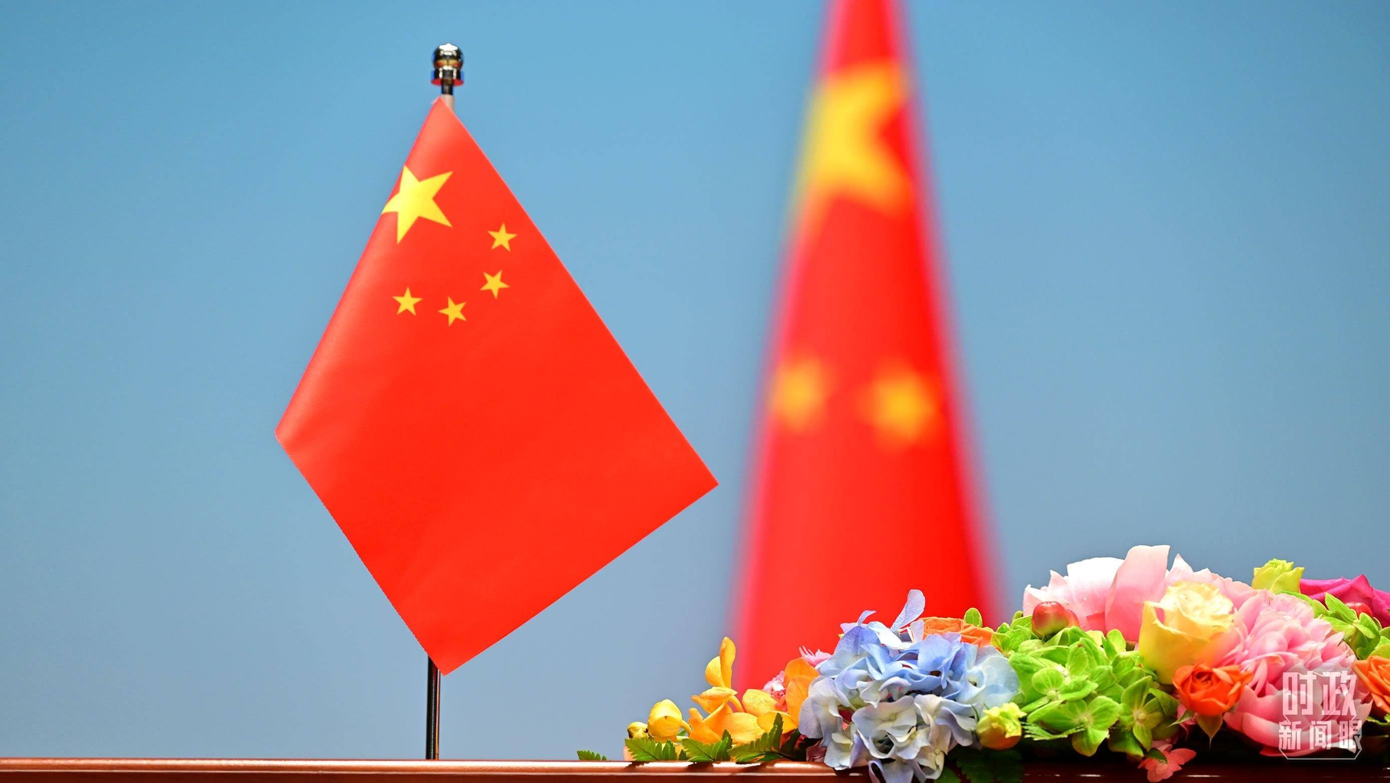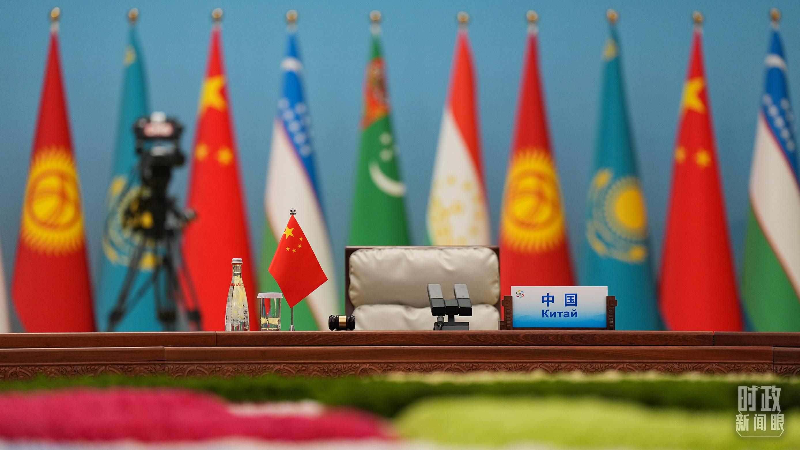 △ 峰會現(xiàn)場的六國國旗。(總臺央視記者范凱拍攝)