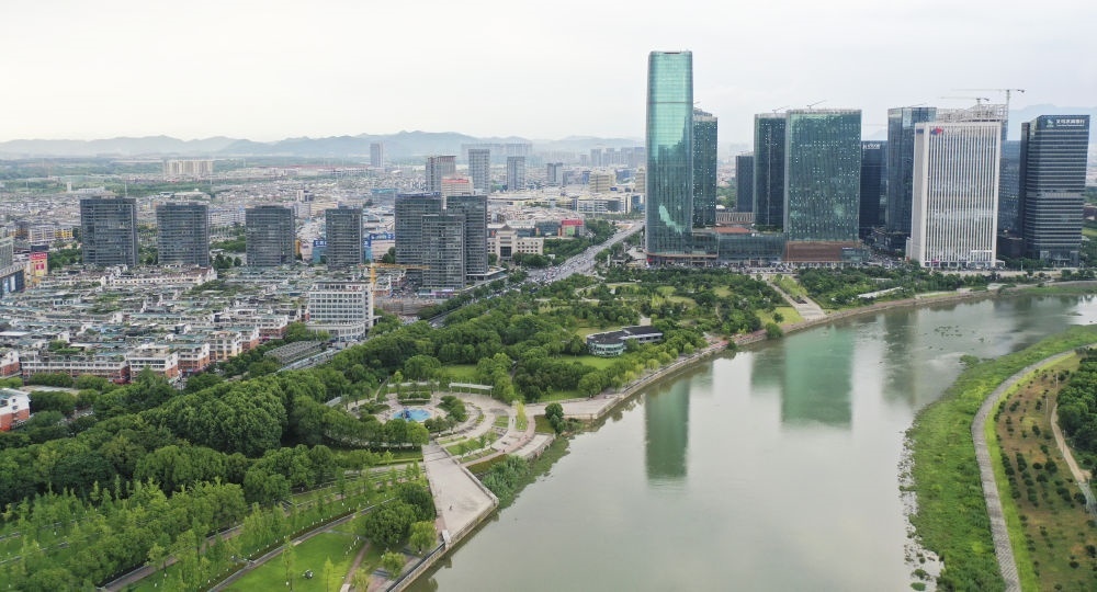 義烏國際商貿(mào)城與金融商務(wù)區(qū)。