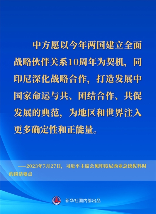 7月27日下午,國(guó)家主席習(xí)近平在成都會(huì)見(jiàn)來(lái)華出席第31屆世界大學(xué)生夏季運(yùn)動(dòng)會(huì)開(kāi)幕式并訪華的印度尼西亞總統(tǒng)佐科。一起來(lái)看習(xí)近平主席在會(huì)見(jiàn)時(shí)的談話要點(diǎn)↓