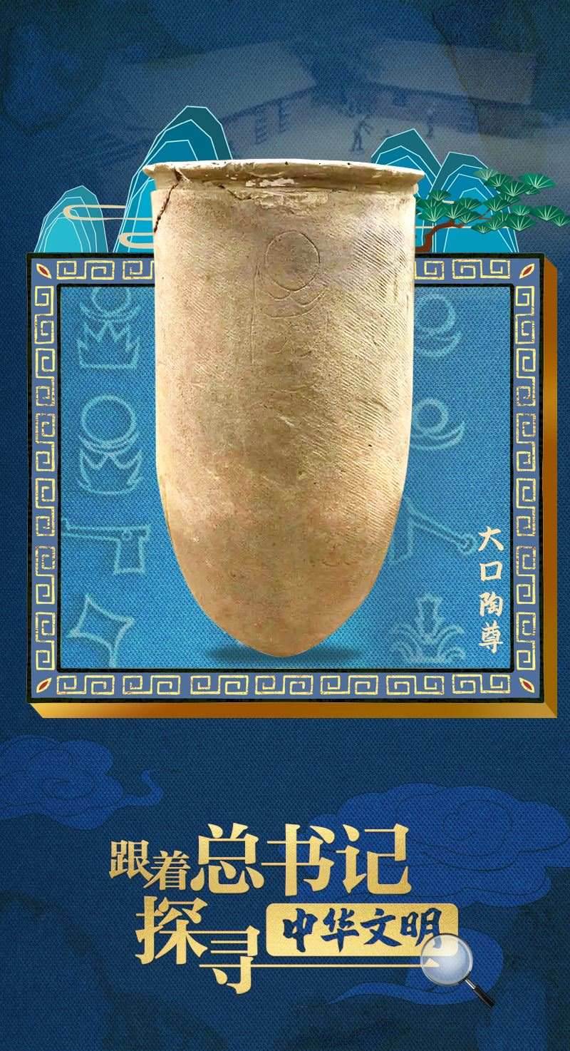 2023年6月2日,習(xí)近平總書記來到中國歷史研究院考察調(diào)研。展廳內(nèi),總書記沿“歷史大道”前行,仔細(xì)詢問最新考古發(fā)掘成果和文物展品保護(hù)情況。講解員指著一件陶器展品向總書記介紹:“這是一件出土于安徽蒙城新石器時(shí)代尉遲寺遺址的大口陶尊,距今大約4800年?!笨倳浽儐枺骸爸袊鞘澜缟咸掌髌鹪醋钤绲膰覇??”