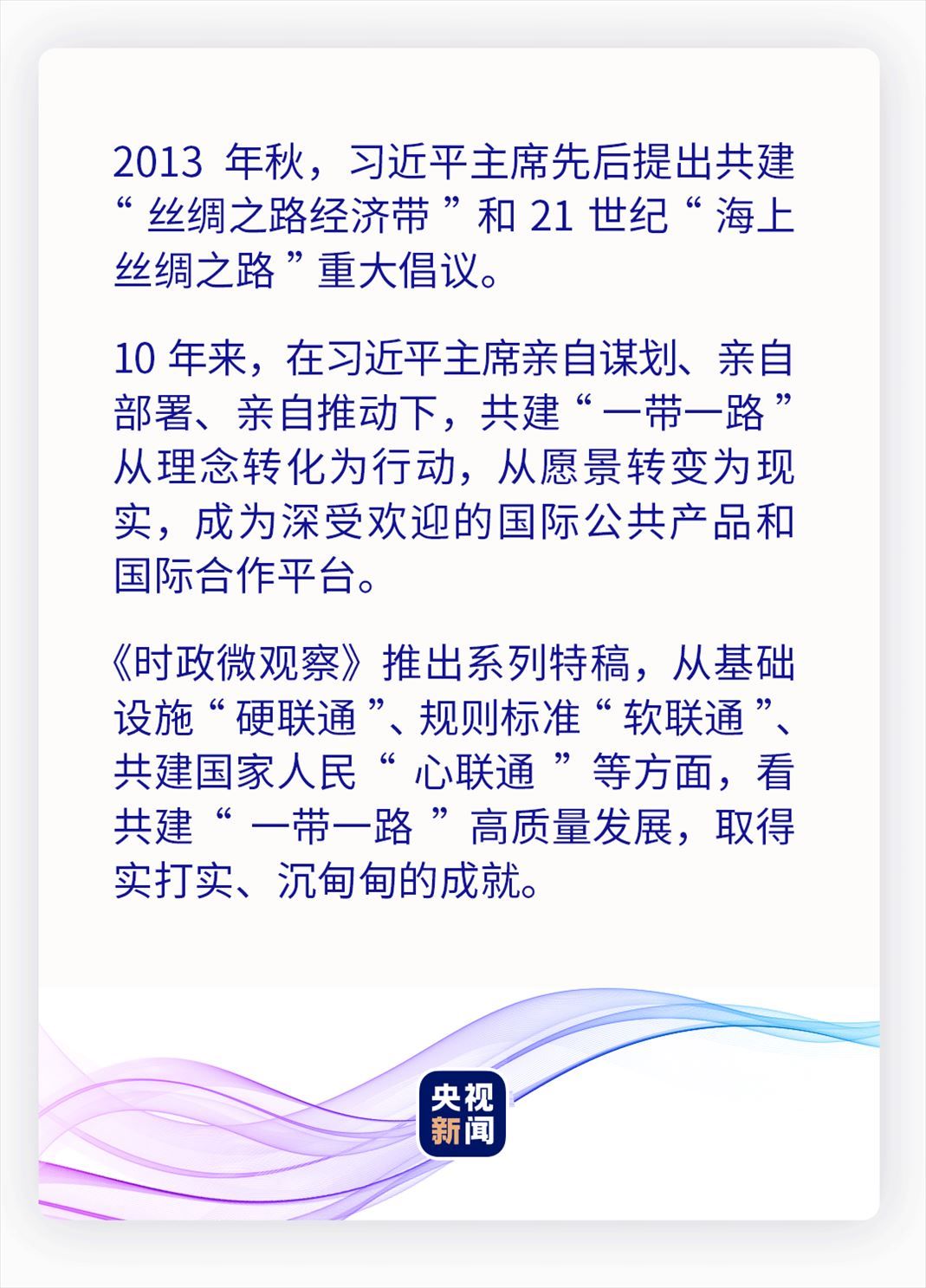 民相親在于心相通。民心相通,是最基礎(chǔ)、最堅(jiān)實(shí)、最持久的互聯(lián)互通。10年來(lái),一個(gè)個(gè)項(xiàng)目在共建“一帶一路”國(guó)家落地開(kāi)花,拉近了各國(guó)人民的心。