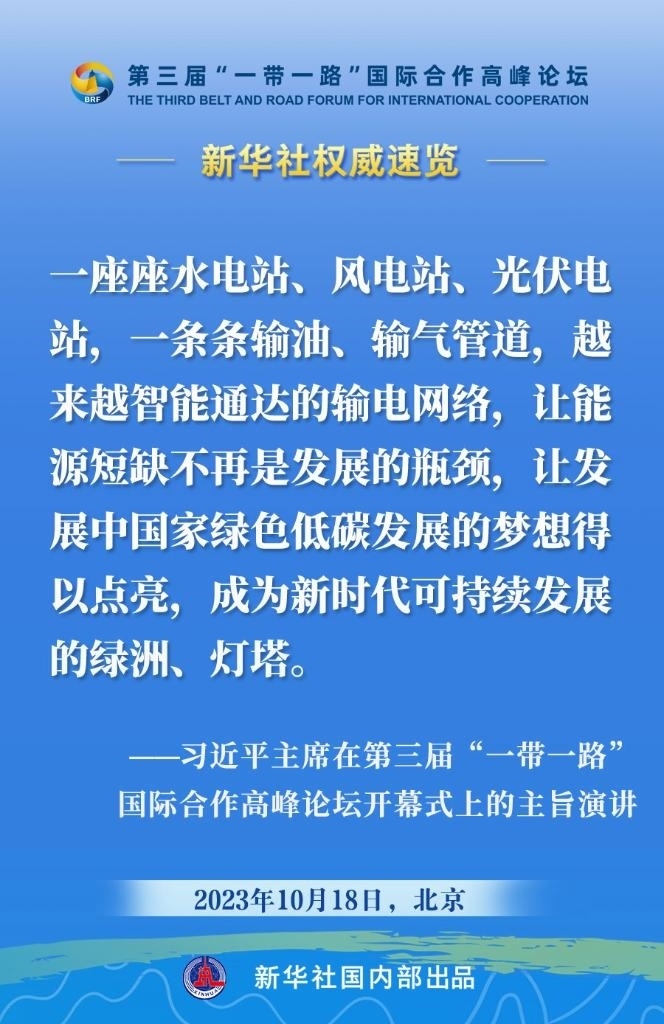 10月18日,國家主席習(xí)近平在第三屆“一帶一路”國際合作高峰論壇開幕式上發(fā)表主旨演講。一起來看金句。