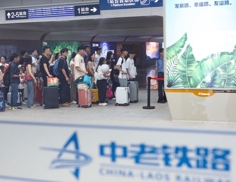 在云南景洪市的中老鐵路西雙版納站,旅客有序進入站臺乘車(2023年10月5日攝)。新華社發(fā)(李云生 攝)