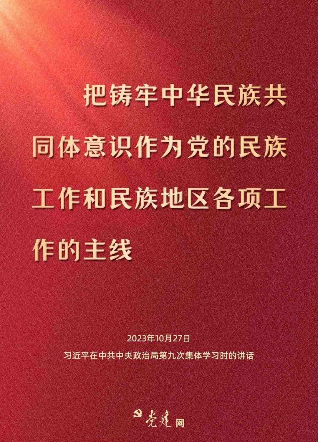中共中央政治局10月27日下午就鑄牢中華民族共同體意識進(jìn)行第九次集體學(xué)習(xí),習(xí)近平總書記主持學(xué)習(xí)并發(fā)表重要講話??靵硪粓D學(xué)習(xí)總書記關(guān)于鑄牢中華民族共同體意識的精彩論述!