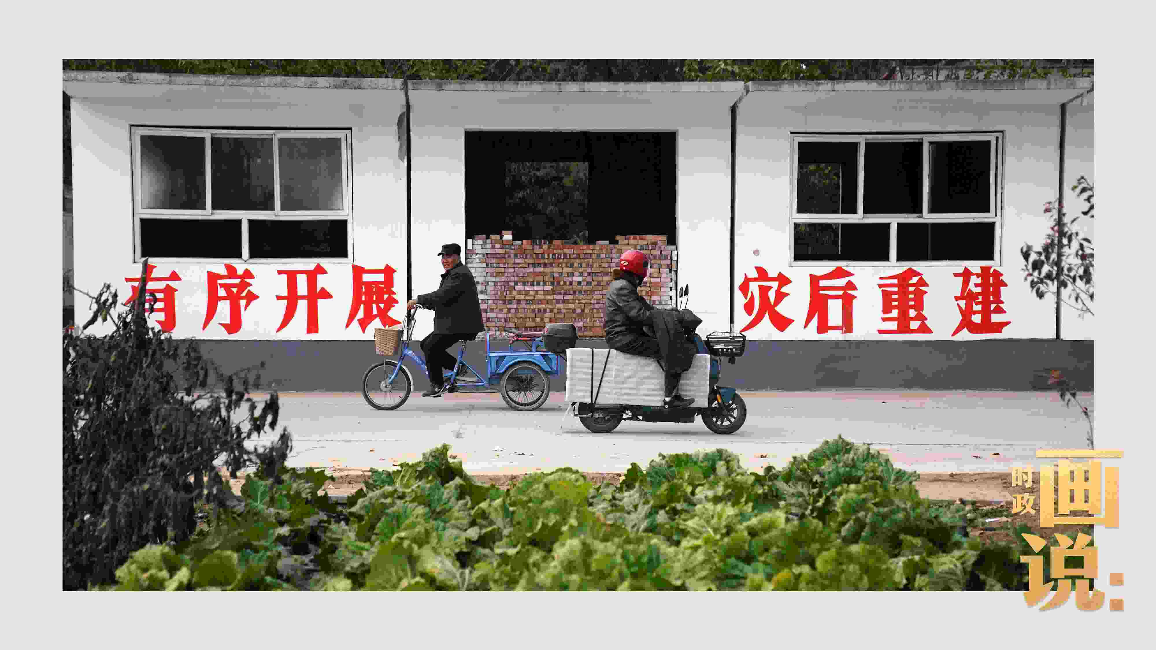 △買早點(diǎn)的老人走過村道。水峪嘴村,北京。大水過后,受災(zāi)嚴(yán)重的北京永定河流域村落加緊重建。