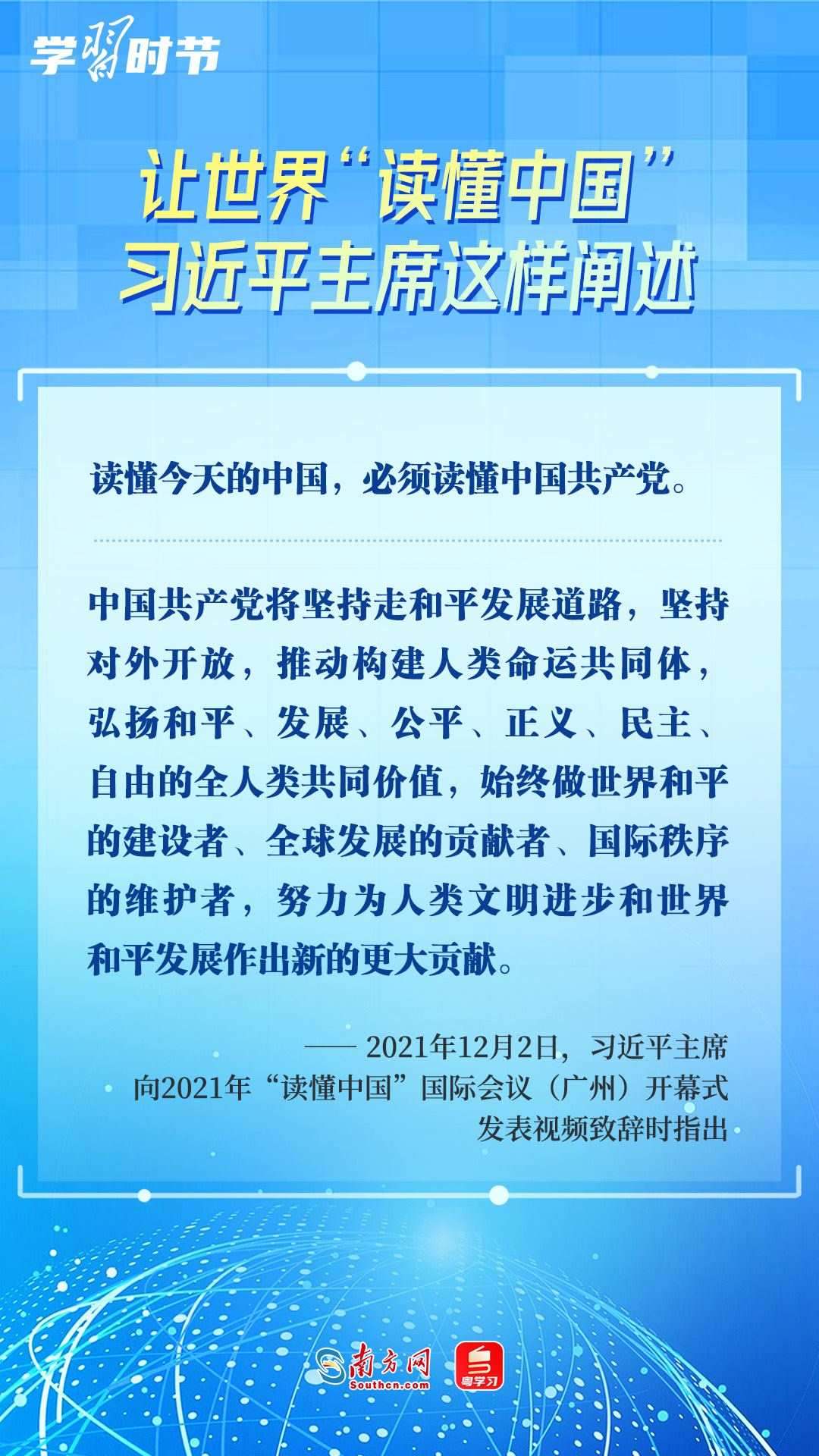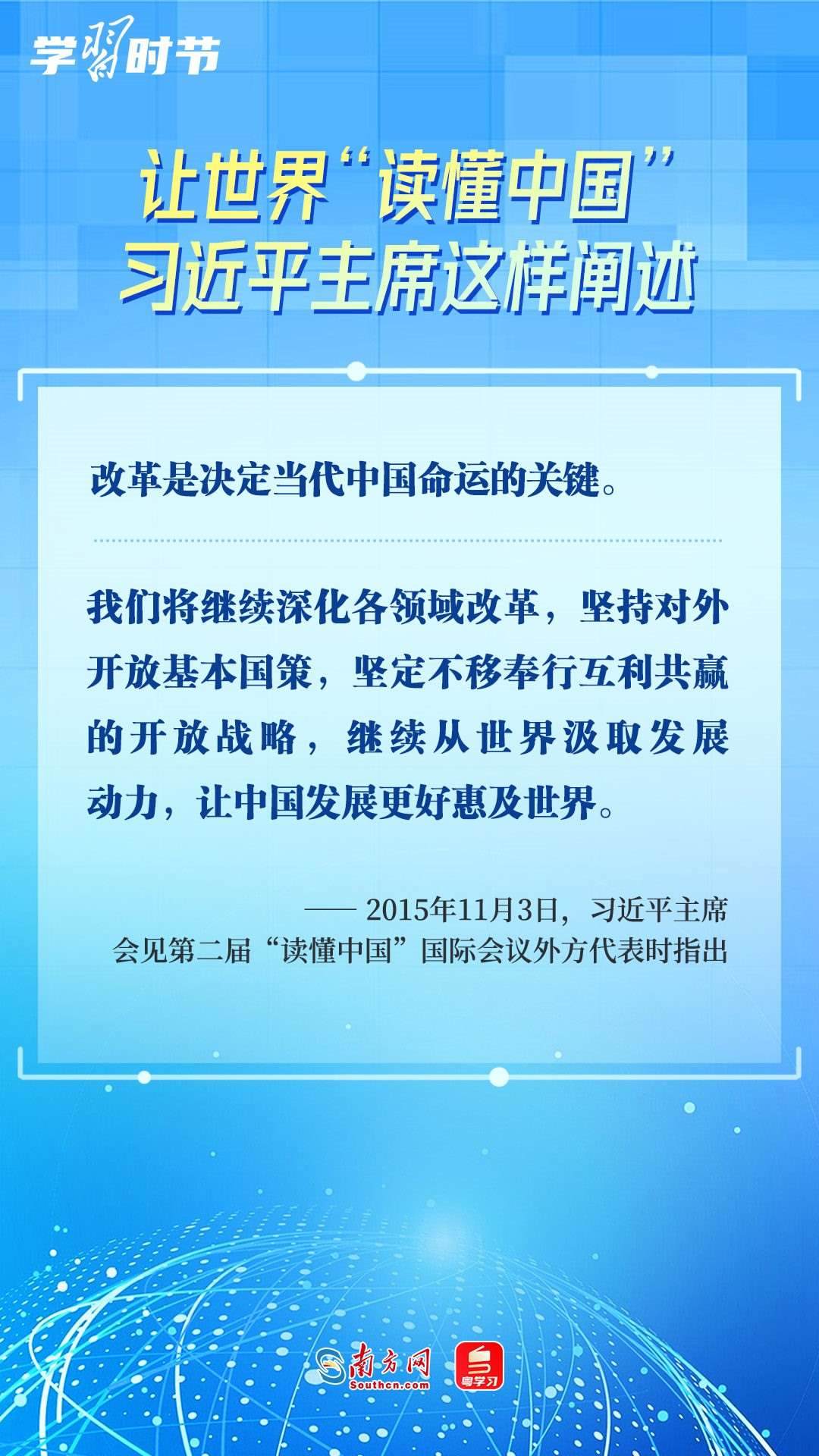 習(xí)近平主席高度重視“讀懂中國(guó)”國(guó)際會(huì)議,多次會(huì)見(jiàn)與會(huì)代表、向會(huì)議致辭或致賀信,闡述中國(guó)的發(fā)展道路、改革開放、對(duì)外政策等,讓我們一同學(xué)習(xí)。