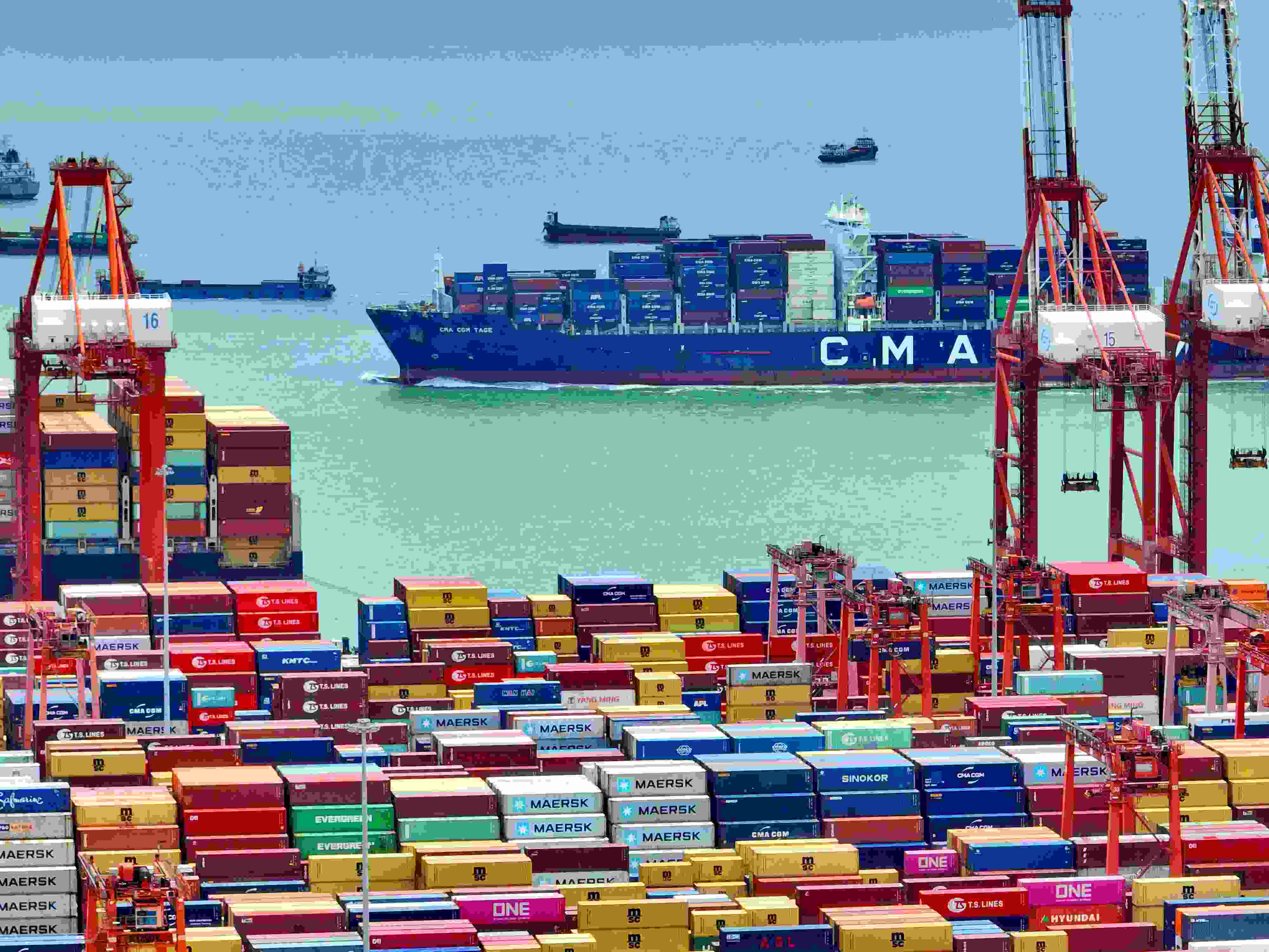 △2023年6月8日,廣東深圳南山區(qū)蛇口集裝箱碼頭,一派繁忙的作業(yè)景象。