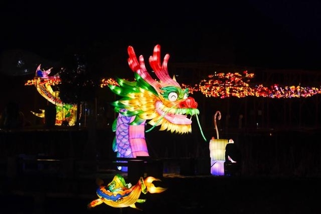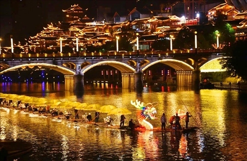 同樣迎來2024年龍年新春燈會(huì)的,還有湖北省恩施州宣恩縣城,這里的龍?jiān)煨蜔艚M格外亮眼,特別是其中一條非常壯觀的“貢水游龍”,龍身由30多只竹筏串聯(lián)而成,總長度達(dá)到200多米。游客還可以登上龍船觀燈展、賞夜色。隨著金色的巨龍?jiān)诒趟序暄延蝿?dòng),也傳遞著吉祥的寓意。
