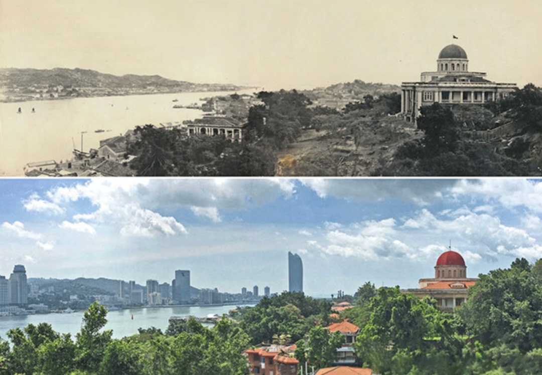 △鼓浪嶼-萬(wàn)石山風(fēng)景名勝區(qū)的鼓浪嶼“八卦樓”一帶今昔對(duì)比