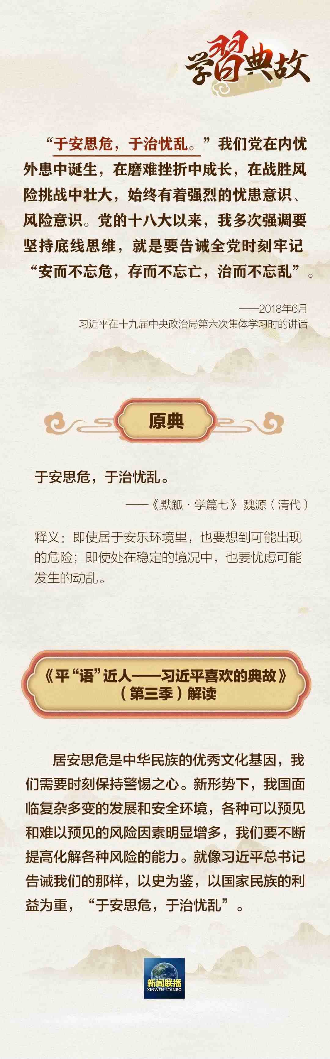 黨的二十大報告中,習近平總書記指出,國家安全是民族復興的根基,社會穩(wěn)定是國家強盛的前提。必須堅定不移貫徹總體國家安全觀,把維護國家安全貫穿黨和國家工作各方面全過程,確保國家安全和社會穩(wěn)定。圍繞“國家安全”這一主題,總書記曾講到哪些典故?一起學習↓↓↓