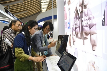△ 2023年11月9日,“互聯(lián)網(wǎng)之光”博覽會(huì)上,人工智能服裝設(shè)計(jì)技術(shù)吸引參觀者駐足體驗(yàn)。