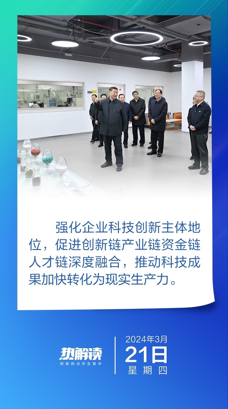 考察期間,主持召開(kāi)以“新時(shí)代推動(dòng)中部地區(qū)崛起”為題的座談會(huì),總書(shū)記在談到如何因地制宜發(fā)展新質(zhì)生產(chǎn)力問(wèn)題,強(qiáng)調(diào)要“構(gòu)建上下游緊密合作的創(chuàng)新聯(lián)合體,促進(jìn)產(chǎn)學(xué)研融通創(chuàng)新,加快科技成果向現(xiàn)實(shí)生產(chǎn)力轉(zhuǎn)化”。