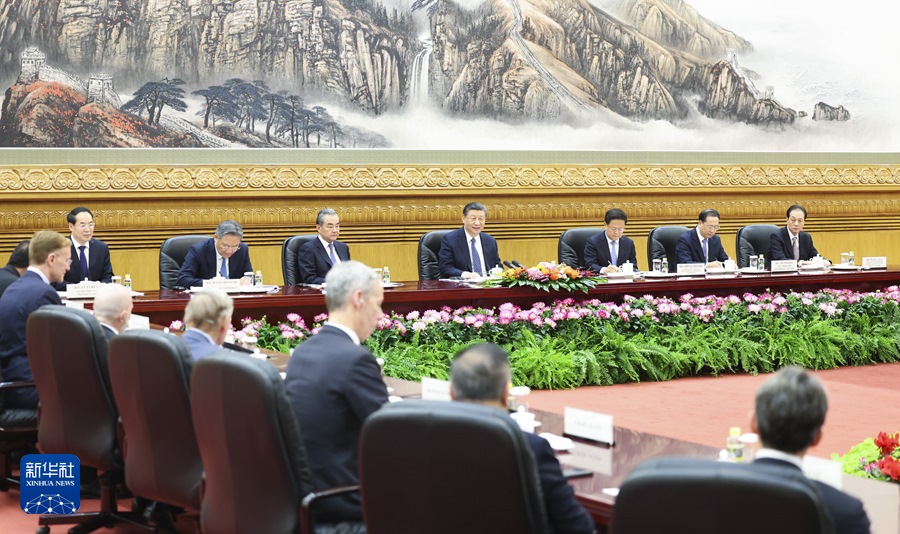 ??美中關(guān)系全國委員會董事會主席格林伯格、黑石集團(tuán)董事長兼首席執(zhí)行官蘇世民、高通公司總裁兼首席執(zhí)行官安蒙、哈佛大學(xué)肯尼迪政府學(xué)院創(chuàng)始院長艾利森、美中貿(mào)易全國委員會會長艾倫等美方代表在發(fā)言中感謝習(xí)近平主席撥冗會見。他們表示,過去幾十年來,中國實(shí)現(xiàn)了非凡經(jīng)濟(jì)增長和轉(zhuǎn)型,體現(xiàn)了強(qiáng)大韌性和活力。在習(xí)近平主席卓越領(lǐng)導(dǎo)下,中國致力于發(fā)展新質(zhì)生產(chǎn)力,實(shí)現(xiàn)更可持續(xù)的高質(zhì)量發(fā)展。中國人民的發(fā)展權(quán)利應(yīng)該得到尊重。相信中國將實(shí)現(xiàn)自身發(fā)展目標(biāo),促進(jìn)世界經(jīng)濟(jì)發(fā)展和融合。一個強(qiáng)大、繁榮的中國是世界的正能量。美中經(jīng)濟(jì)關(guān)系緊密依存,兩國唯有和平共處,才能實(shí)現(xiàn)各自發(fā)展繁榮?!靶尬舻椎孪葳濉辈⒎潜厝弧C绹髽I(yè)贊賞中方近期出臺的一系列進(jìn)一步改革開放的重要舉措,看好中國經(jīng)濟(jì)發(fā)展前景,將堅定不移繼續(xù)深耕中國,同中國發(fā)展長期緊密的合作關(guān)系。習(xí)近平主席同拜登總統(tǒng)去年11月在舊金山成功會晤,提振了美國各界和世界對美中關(guān)系未來的預(yù)期和信心。美國工商界和戰(zhàn)略學(xué)術(shù)界支持美中雙方加強(qiáng)各層級交往交流,增進(jìn)相互理解、信任與合作,攜手應(yīng)對全球性挑戰(zhàn),推動建立穩(wěn)定、可持續(xù)、富有成效的美中關(guān)系。