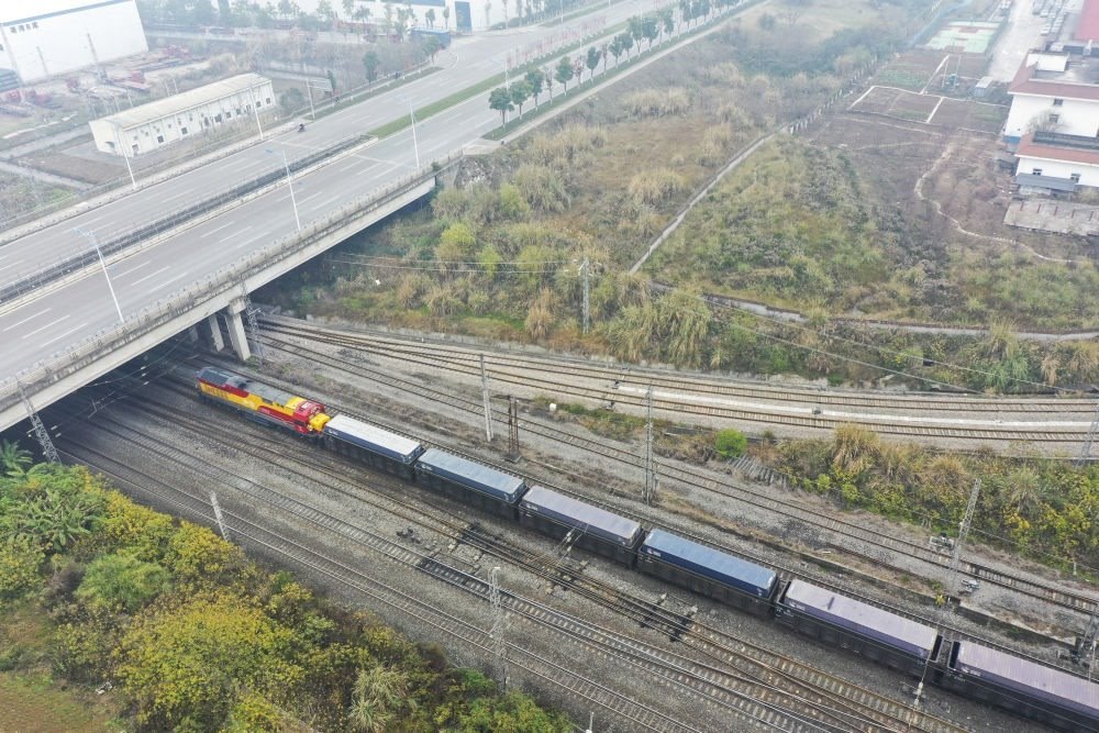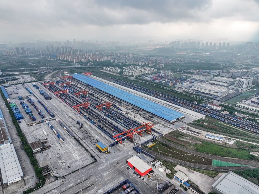 自重慶國(guó)際物流樞紐園區(qū)向北,一列列滿載貨物的中歐班列經(jīng)新疆霍爾果斯口岸出境,聯(lián)結(jié)起區(qū)域開(kāi)放發(fā)展之路。