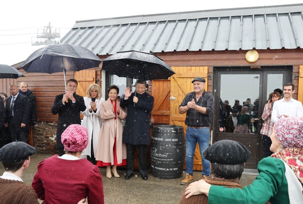 鐵制的牛鈴、風干的火腿、斑駁的獸皮毯、歡快的牧羊人之舞……南法山區(qū)的古樸民風撲面而來。屋外銀裝素裹,屋內(nèi)暖意融融。兩國元首憑窗而坐,遠眺山景氣象萬千,縱論世事風云變幻,暢敘文明和美之道。從尼斯夜談到豫園茶敘,從松園會晤到雪山對話,中法元首外交再續(xù)佳話。