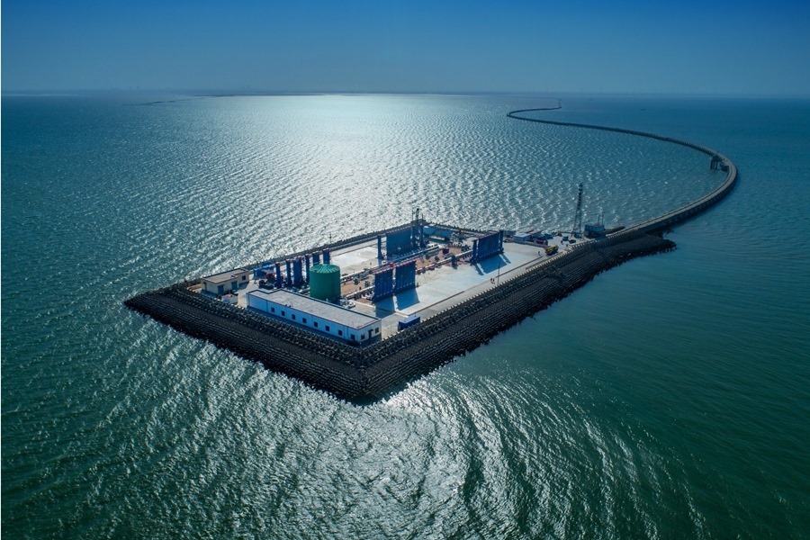 這是勝利油田青東5采油平臺(無人機(jī)照片)。新華社發(fā)