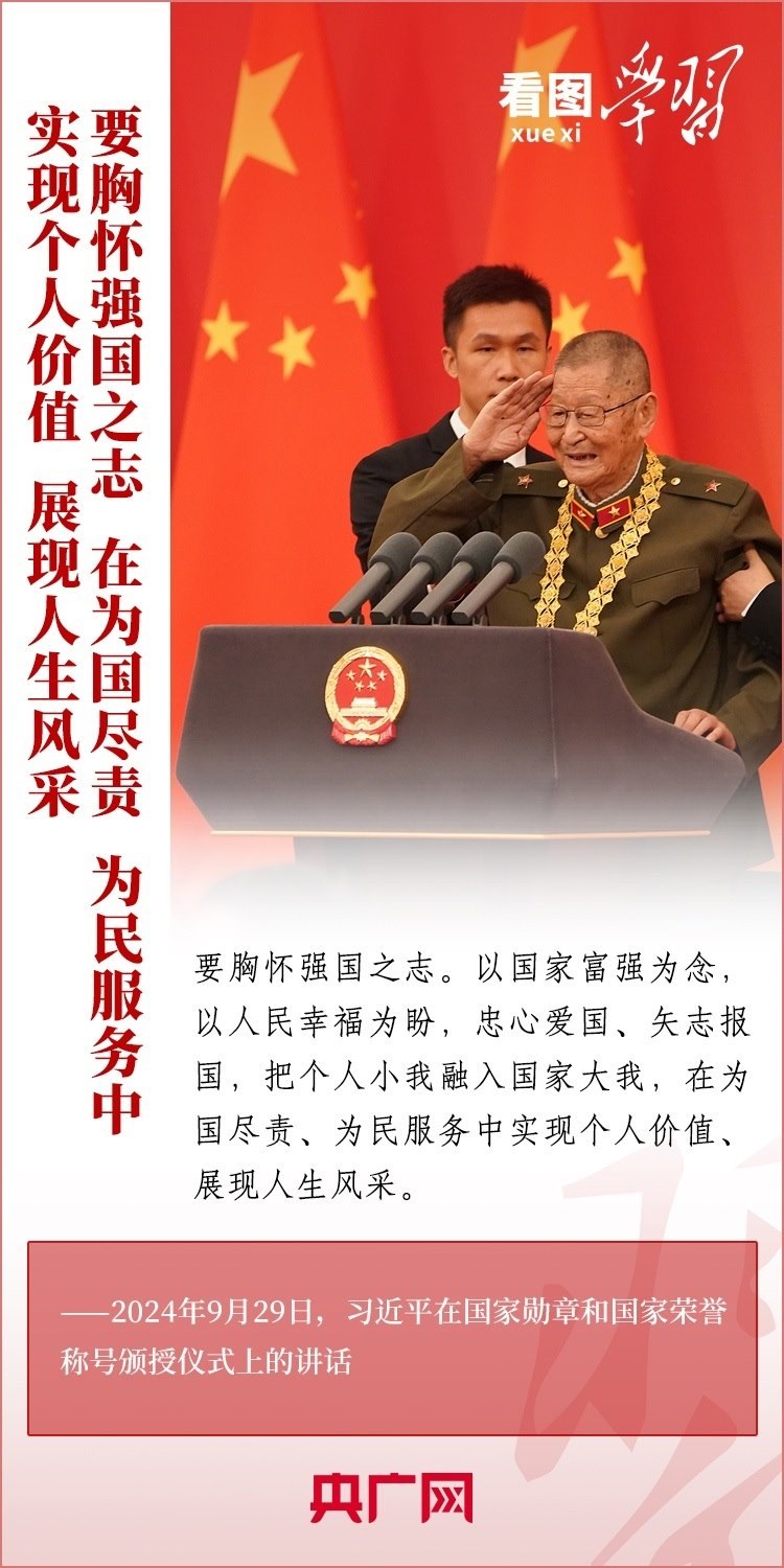 9月29日,中華人民共和國國家勛章和國家榮譽(yù)稱號頒授儀式在北京舉行,習(xí)近平總書記向國家勛章和國家榮譽(yù)稱號獲得者頒授勛章獎?wù)虏l(fā)表重要講話??倳洀?qiáng)調(diào),全黨全國各族人民要以英雄模范為榜樣,團(tuán)結(jié)奮進(jìn)、砥礪前行,匯聚起共襄強(qiáng)國盛舉的磅礴力量。一起來學(xué)習(xí)!